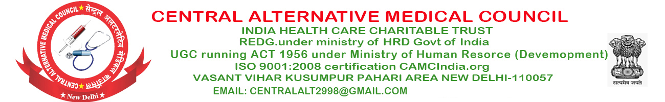 – AFFILIATED TO CENTRAL ALTERNATIVE MEDICAL COUNCIL DELHI (MEDICINES & HOLISTIC MEDICINE RESEARCH)